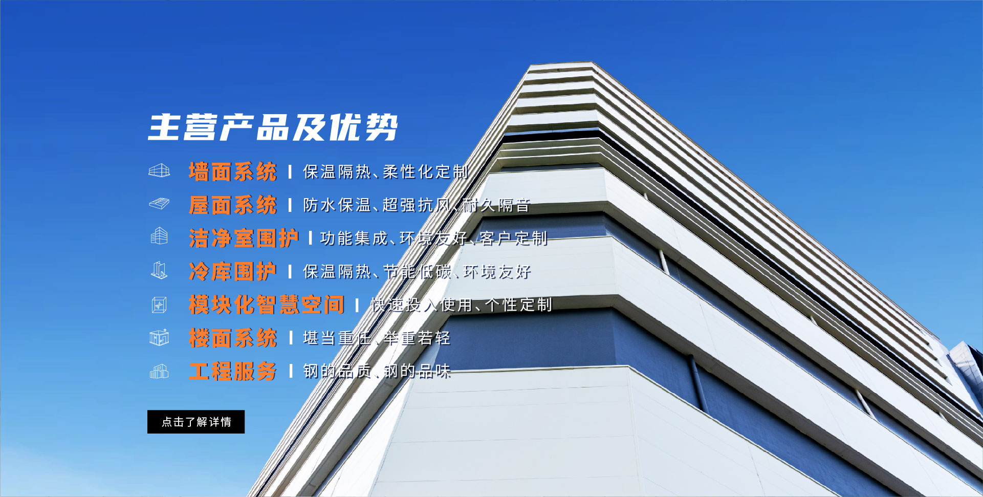 墻面系統(tǒng) 屋面系統(tǒng) 樓面系統(tǒng) 建筑鋼結構 潔凈室圍護 冷庫圍護 得默產品系列 全面解決方案